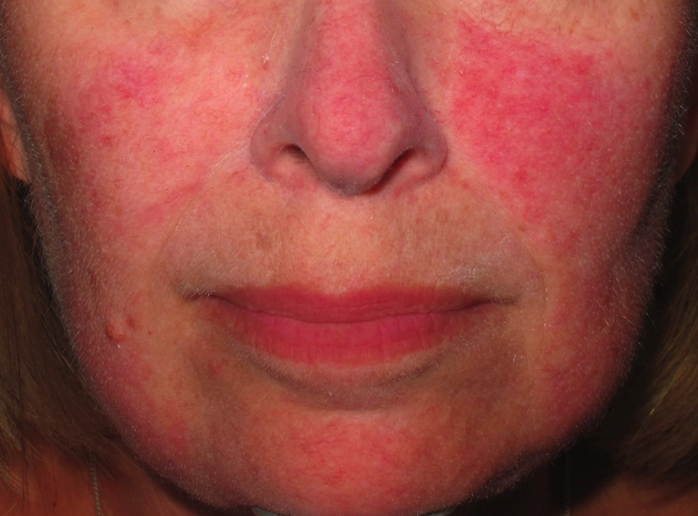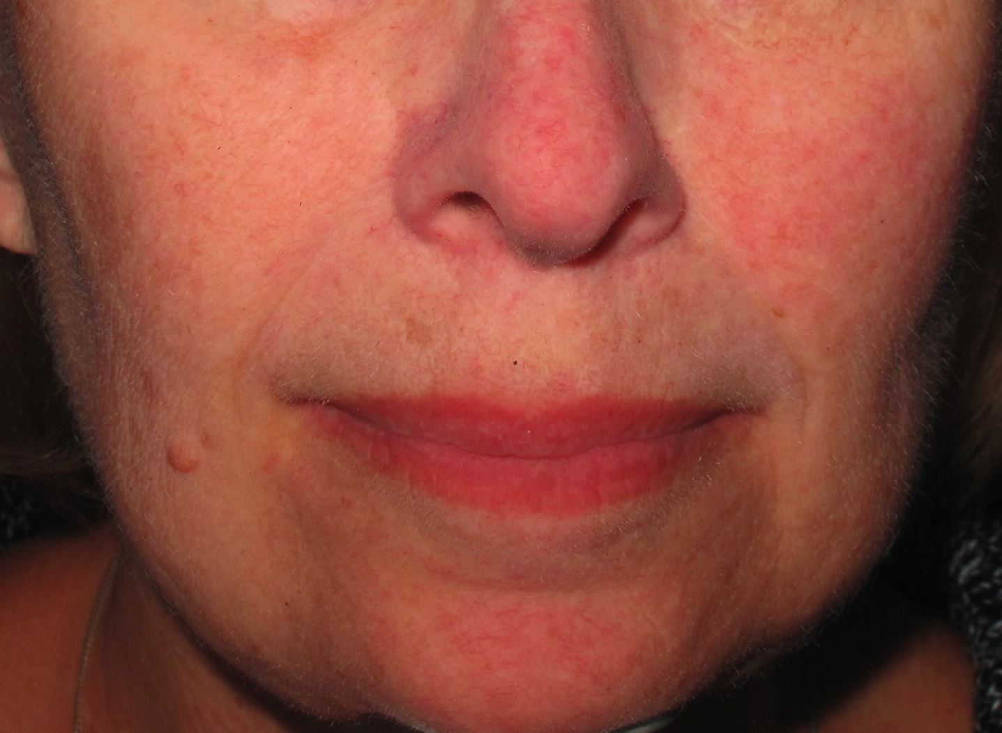 It appears as reddish or red-brown patches and is a combination of concentrated pigment and blood vessel/broken capillaries. If your skin is prone to these blemishes, it’s best to avoid the sun as much as possible. It’s often a feature of Rosacea – a combination of a red face and broken capillaries, and also shows itself in the ‘V’ of the chest and neck area.
